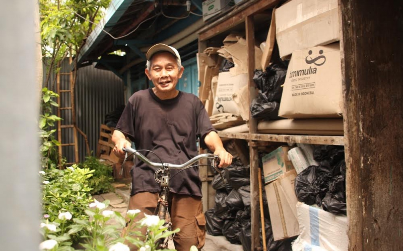 Kini pekerjaan yang masih ia tekuni adalah membantu membersihkan sampah dari toko roti, Saban pagi ia akan mengayuh pedal sepeda lamanya untuk membawa sampah-sampah toko roti ke TPS yang jaraknya cukup jauh. “Pokoknya sampah-sampah itu harus dibereskan sebelum tokonya buka, kemudian saya bawa dengan sepeda ini ke TPS, biasanya saya berangkat pukul 6 pagi, lalu sekitar jam 8 itu sudah selesai,” ujar Pak Hartopo menuntun sepeda tuanya.