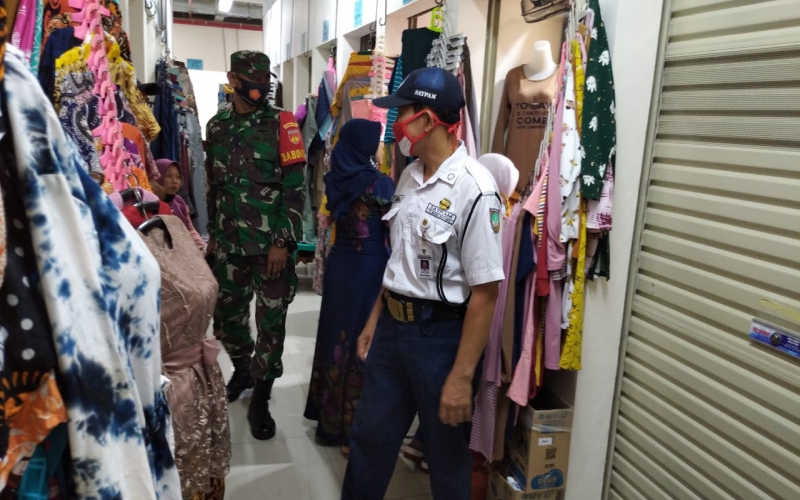 Babinsa Kelurahan Gajahan Koramil 05/Pasar Kliwon Kodim 0735/Surakarta Sertu Dwi Santoso bersinergi dengan Scurity Pasar selalu melakukan upaya dalam mencegah penyebaran Covid 19 di wilayah binaannya tempat kerumunan di Pasar Klewer Kelurahan Gajahan Kecamatan Pasar Kliwon, Sabtu (30/1/2021) Pukul 10:00 wib s.d. selesai.