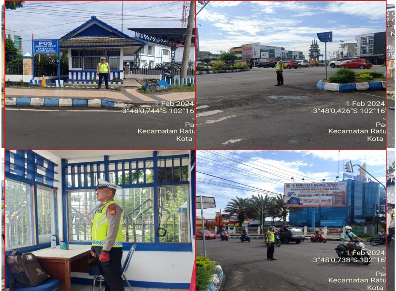 Bengkulu – Dalam rangka mencegah kejahatan 3C dan memantau arus lalin, Sat Lantas Polresta Bengkulu melaksanakan pemantauan dan patroli di seputaran Pos Lantas Simpang Skip, Kamis (01/02/2024) sore.