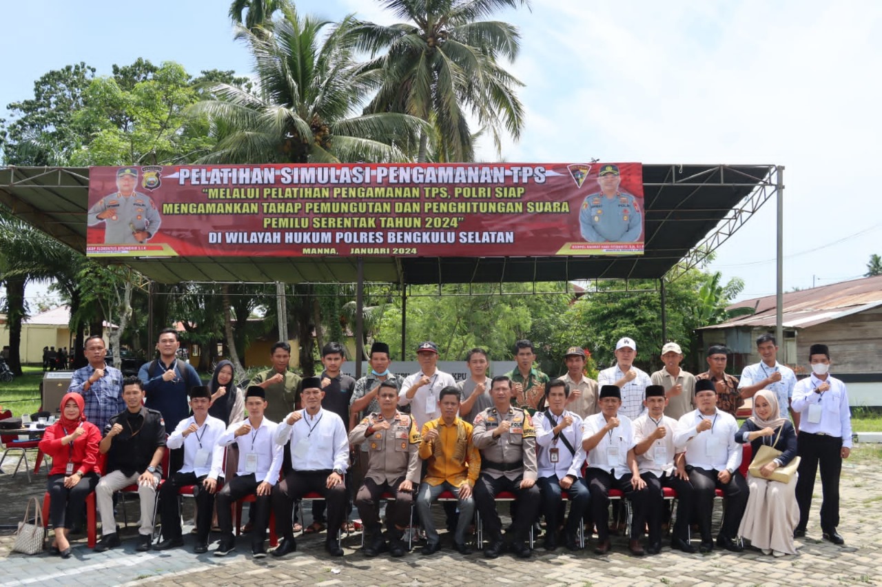 Bengkulu Selatan – Polres Bengkulu Selatan Polda Bengkulu menggelar pelatihan dan peningkatan kemampuan pengamanan TPS Pemilu 2024 di lapangan apel Depan Gedung Graha wicaksana Leghawa Polres Bengkulu Selatan, Rabu (31/02/24) pagi.