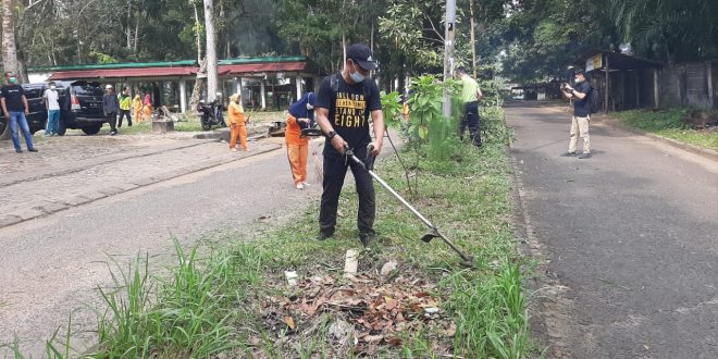 Dipimpin Wakil Wali Kota Bengkulu Dedy Wahyudi, tim kebersihan DLH, Kecamatan Singaran Pati, Koramil 047-05 Bengkulu serta mahasiswa Unihaz berbondong-bondong membersihkan kawasan wisata taman remaja, Jumat (30/4/2021).