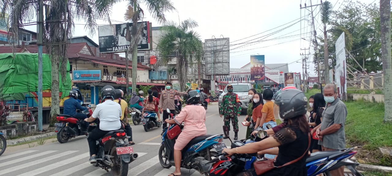 Landak – Babinsa Koramil Ngabang, Sertu Kimsin bersama Bhabinkamtibmas melaksanakan pengamanan dan pemantauan perayaan ibadah minggu pagi di Gereja Salib Suci Ngabang, Kecamatan Ngabang, Kabupaten Landak, Minggu (23/5/2021).