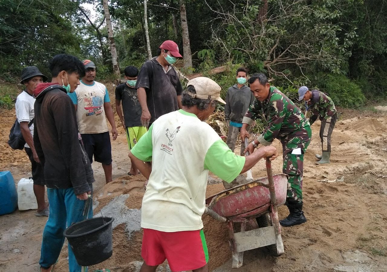 Pada kesempatan tersebut Sertu Hb waratmojo,mengungkapkan Karya Bhakti yang dilakukan di Desa tunang ini sebagai bentuk gotong-royong dan saling bahu membahu antara TNI dan warga masyarakat.