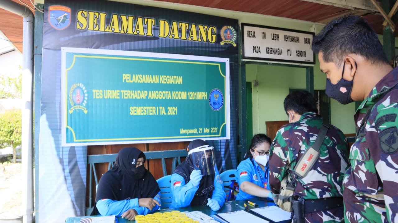 MEMPAWAH – Kodim 1201/Mph melaksanakan tes urine terkait penggunaan Narkoba bagi para prajurit. Hasilnya, sebanyak 45 prajurit yang menjalani tes urine dinyatakan negatif narkoba.