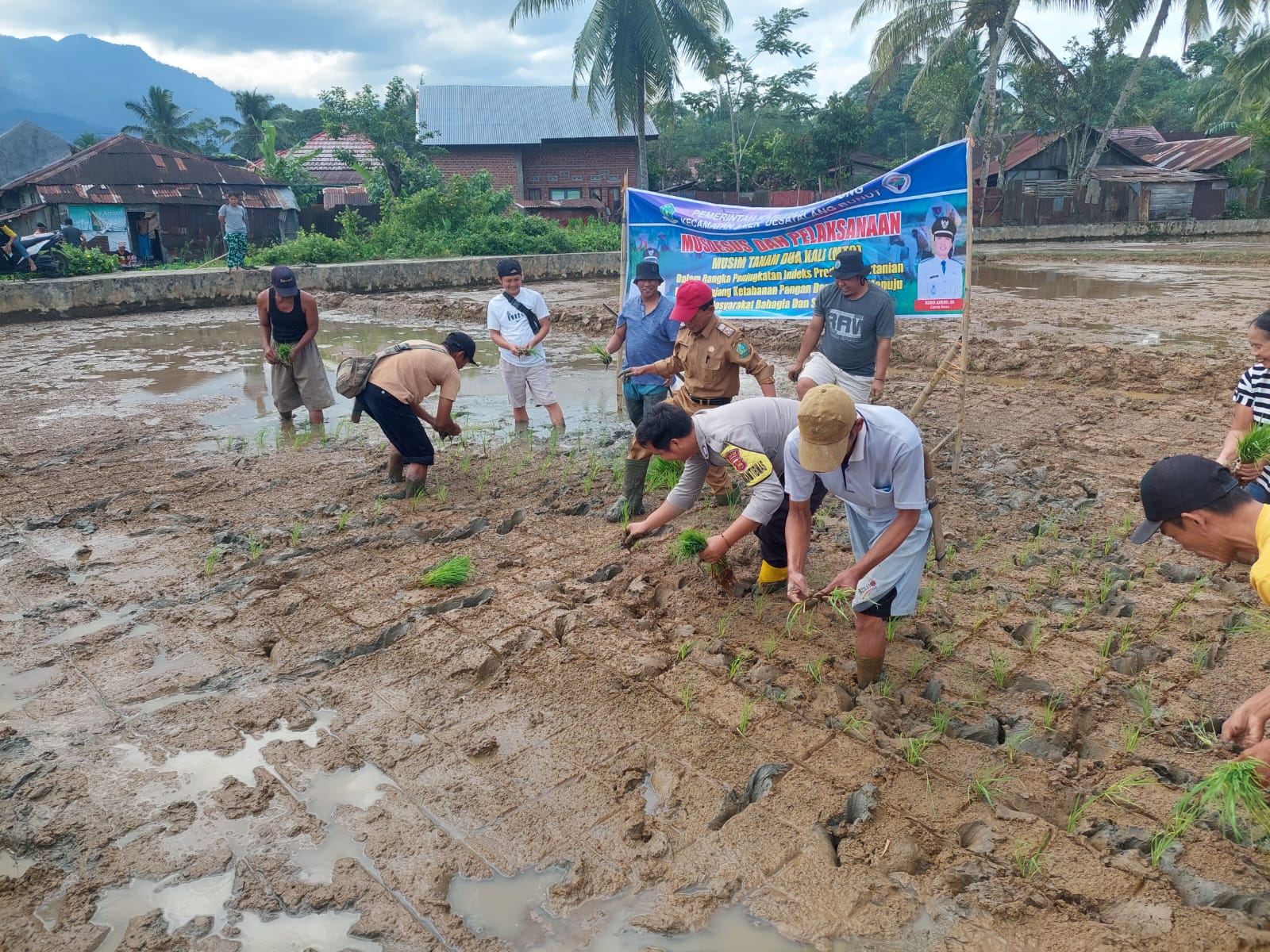Dalam kegiatan sambangnya tersebut, Brigpol Meki turut serta menanam padi di lahan sawah program MT2.