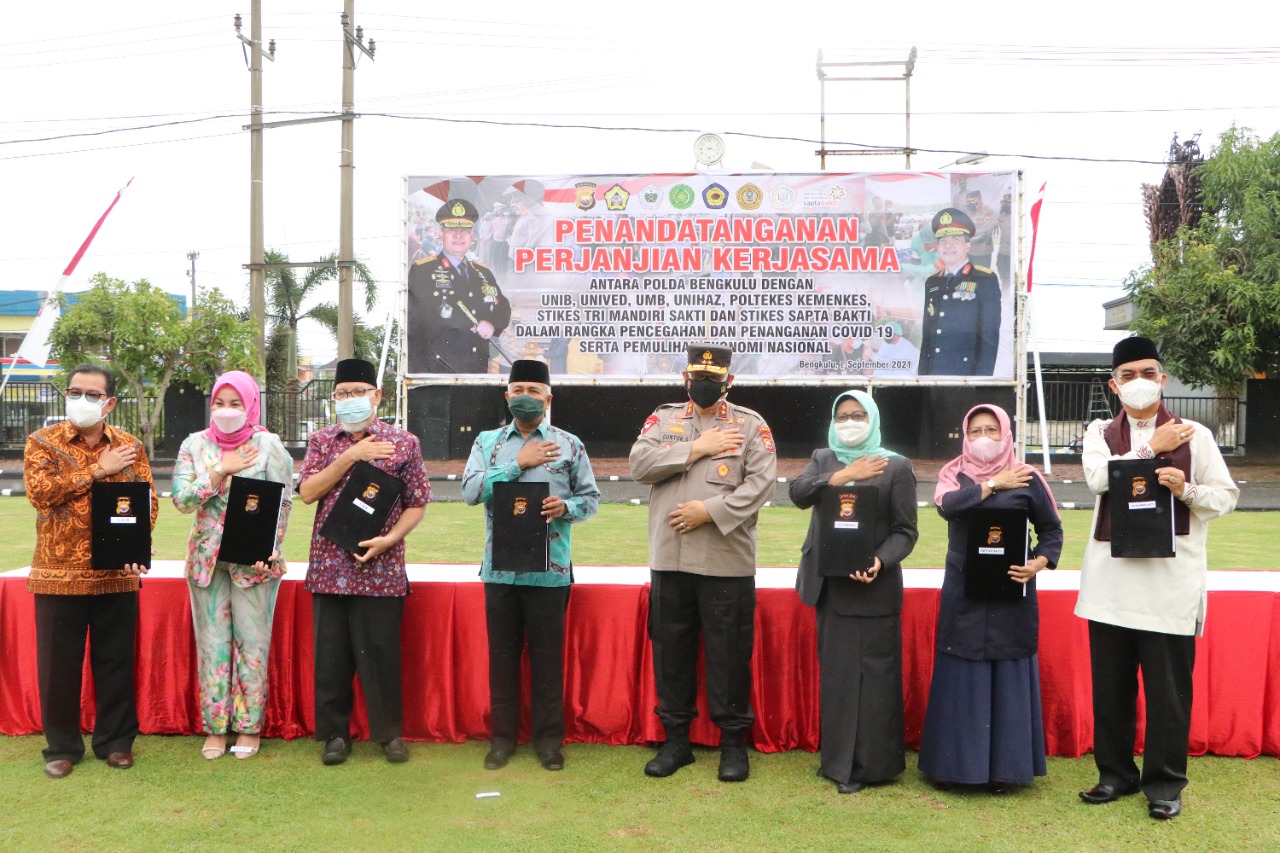 Kegiatan kemudian ditutup dengan penandatanganan bersama oleh Kapolda Bengkulu dengan pihak Universitas Bengkulu (Unib), Universitas Dehasen (Unived), Universitas Muhammadiyah Bengkulu (UMB), Universitas Hazairin (Unihaz), Poltekes Kemenkes, Stikes Tri Mandiri Sakti, dan Stikes Sapta Bakti.