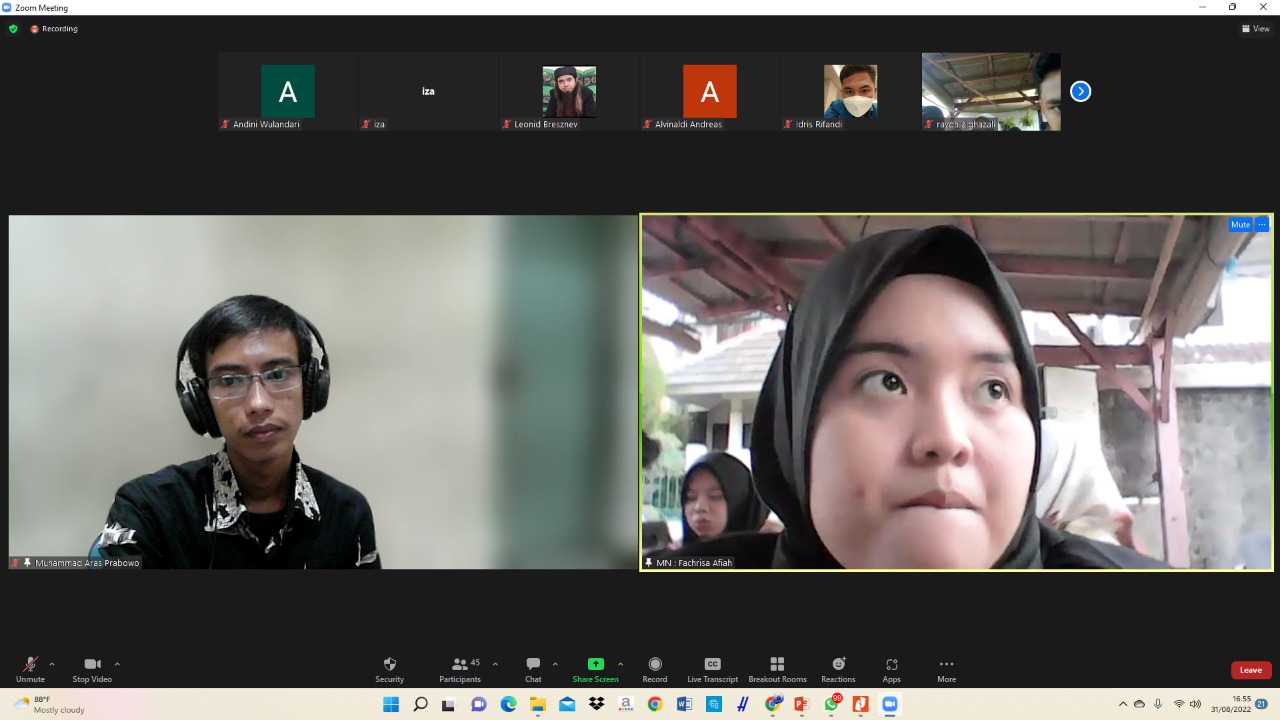Kegiatan dibuka langsung oleh Ketua Rayon Al-Ghazali FEB Unas Sahabat Leonid Bresnev. Leonid dalam sambutannya mengapresiasi kinerja panitia yang telah berhasil menggelar kegiatan Dimsan. “Saya mengapresiasi kepada sahabat-sahabatwati panitia yang telah berhasil merancangan kegiatan ini, terbukti dengan lebih dari 40 peserta yang hadir dari berbagai daerah” jelasnya. 31/08/22