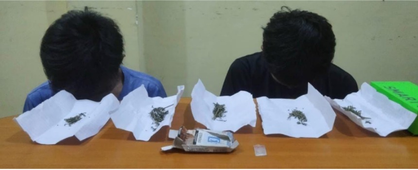 Saat tim mendatangi lokasi, ditemukan dua orang terduga pelaku yang saat diamankan ditemukan barang bukti berupa 5 (lima) paket kecil diduga Narkotika Golongan 1 jenis tanaman Ganja dan 1 (satu) paket narkotika golongan 1 jenis sabu tambahnya.