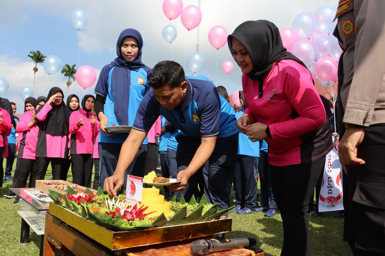 Olahraga bersama ini ditutup secara simbolis melalui pelepasan balon ke udara oleh Kapolres Kepahiang bersama Ibu Asuh Polwan, sebagai tanda melepaskan harapan dan kebaikan ke langit serta pemberian tumpeng kepada Polwan Polres Kepahiang.