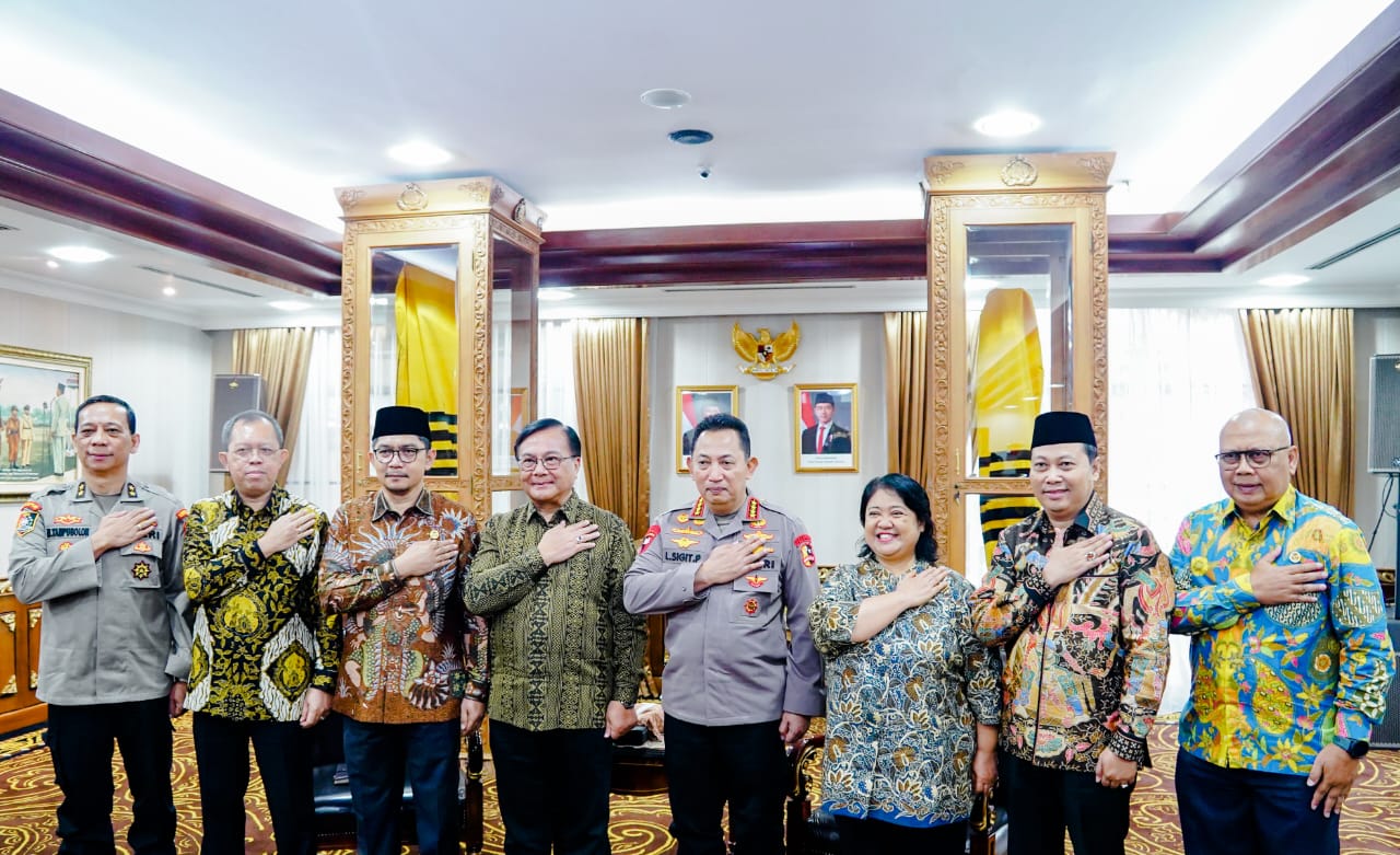 Jakarta – Dalam rangka pamitan akhir masa tugas Komisi Kepolisian Nasional (Kompolnas) satu Periode masa khidmah 2020-2024, Anggota Harian Kompolnas yang dipimpin oleh Irjen Pol. (Purn) Dr. Benny Josua Mamoto, S.H., M.Si., berkunjung ke Markas Besar Kepolisian Negara Republik Indonesia, di Jalan Trunojoyo, Kebayoran Baru, Jakarta Selatan, yang diterima langsung Kapolri, Jenderal Pol. Drs. Listyo Sigit Prabowo, M.Si., pada Kamis, 31 Oktober 2024.
