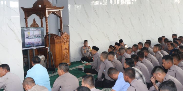 Bengkulu – Polda Bengkulu mengikuti kegiatan Pembinaan Rohani dan Mental berbagai agama melalui sarana Zoom Meeting pada Kamis (02/01/2025) pukul 07.00 WIB. Kegiatan ini dilaksanakan di berbagai lokasi sesuai dengan agama masing-masing peserta, yakni Masjid Al Amin untuk umat Islam, Rumah Doa Getsemany untuk Kristen Protestan, Aula Bid TIK untuk Katholik, Aula Biddokkes untuk Hindu, dan Ruang Urdoksik Subbiddokpol Biddokkes untuk Budha. Ikut juga dalam kegiatan binrohtal kali ini Wakapolda Bengkulu Brigjen Pol Drs. Agus Salim, Irwasda Polda Bengkulu Kombes Pol Asep Teddy, S.IK, MM serta para pejabat utama Polda Bengkulu lainnya.