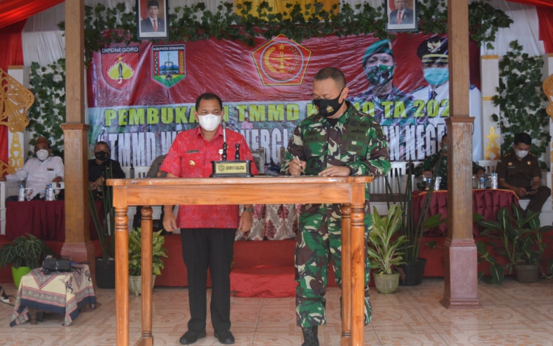 Penandatanganan berita acara Penyerahan Program TNI Manunggal Membangun Desa (TMMD) ke-110Reguler Kodim 0714/Salatiga dilakukan secara terbatas Bupati Semarang Bpk Ngesti Nugraha S.Sos Dengan Letkol Inf Loka Jaya Sembada , Sip Selaku Dansatgas disaksikan Forkopinda Dan Tamu Undangan di Pendopo Desa Ketapang, Selasa (02/03/2021)