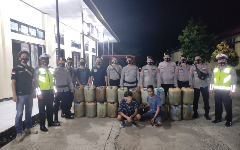 Setelah dilakukan pemeriksaan yang dipimpin oleh Katim Bripka Arman W beserta 11 anggota lainnya ditemukan 20 dirigen solar (640 liter). Selain itu petugas juga mengamankan 2 orang yang diduga telah melakukan penimbunan bahan bakar bersubsidi tersebut.