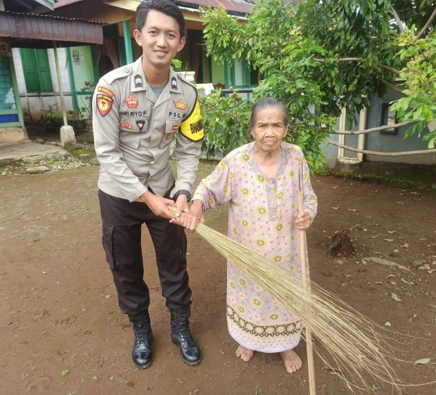 Polisi Humanis Bagikan 1000 Sapu Lidi Kepada Warga Kecamatan Kerkap