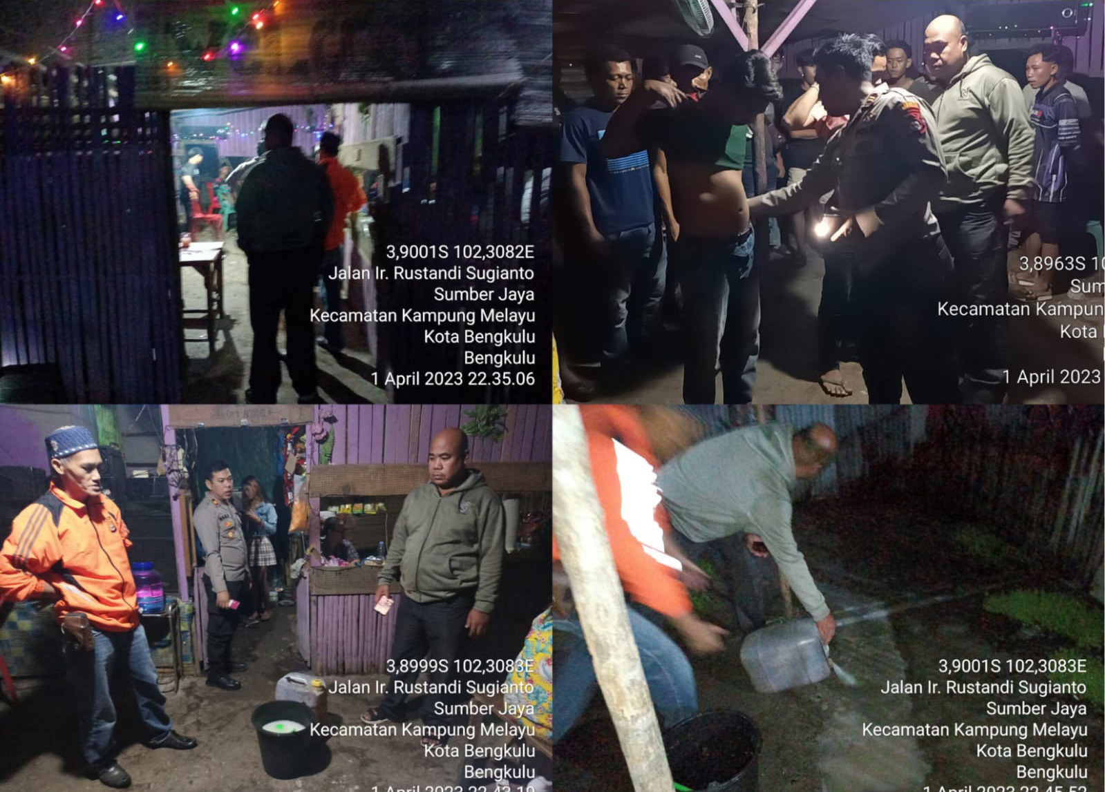 Bengkulu – Kegiatan Rutin Yang Ditingkatkan (KRYD) yang digelar Polsek KSKP Pulau Baai Polresta Bengkulu Polda Bengkulu yang digelar Sabtu (11/4/2023) malam, menyasar warung penjual minuman keras dan minuman tuak. Tak hanya itu, KRYD ini juga bertujuan mencegah aksi balap liar, kerumuman warga/remaja nongkrong, premanisme, dan senjata tajam.