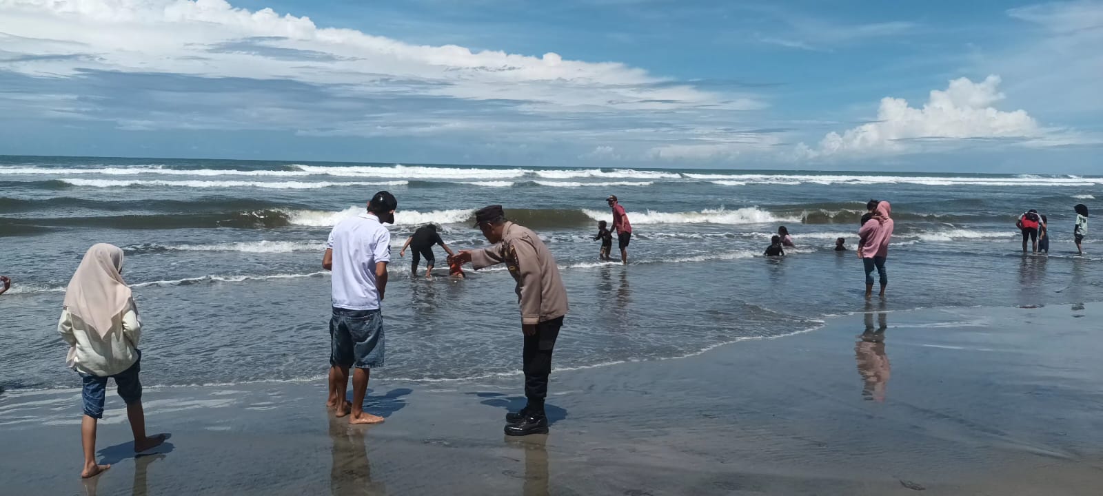 Personel Polres Seluma dan polsek seluma Timur melaksanakan giat Patroli dan himbauan di Lokasi objek wisata Pantai Seluma Desa Pasar Seluma, Memberikan himbauan kepada Pengunjung: