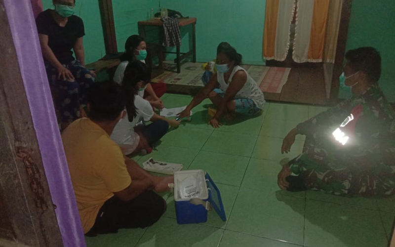 “Sosialisasi dilakukan dengan bersilaturahim pada warga, petugas puskesmas juga menjelaskan manfaat swab PCR adalah untuk mengetahui apakah terpapar covid atau tidak,” ungkap Serda Masnar.