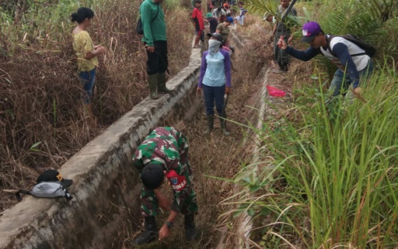 Anggota Koramil Menjalin, Kodim 1201/Mempawah melaksanakan gotong royong membersihkan saluran irigasi bersama masyarakat sepanjang 350 meter di Dusun Tanjam, Desa Menjalin Kabupaten Landak, Minggu (30/5/2021).