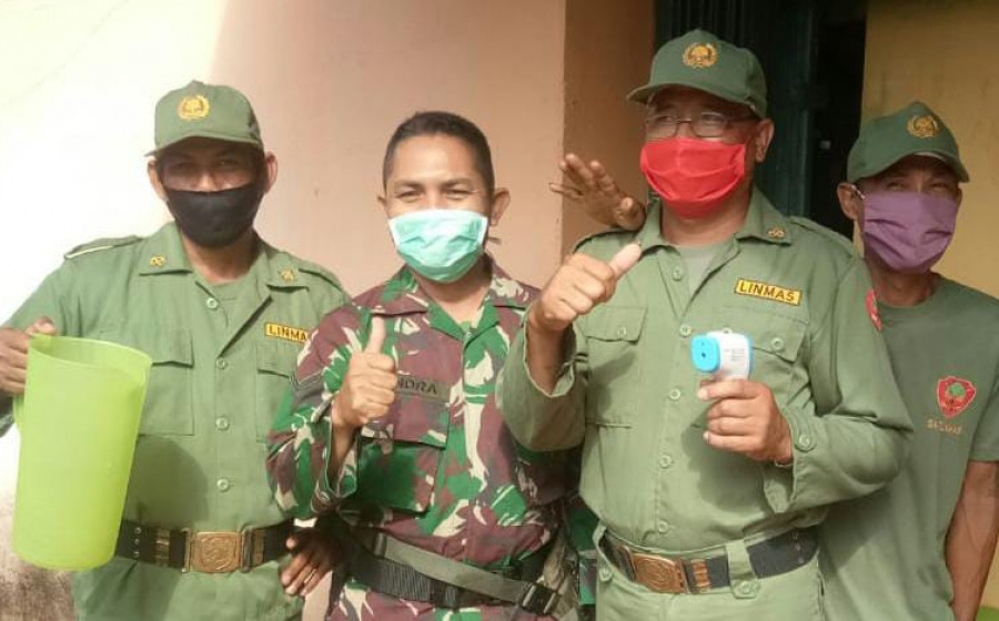 “Salah satu tugas Binter Koramil adalah melakukan pembinaan kepada unsur pelaksana keamanan desa Satlinmas. Materi yang diberikan berupa pengetahuan Pancasila, UUD 1945, wawasan kebangsaan, latihan baris-berbaris, pengibaran bendera, latihan fisik dan bela diri. Dimasa pandemi ini kami mengajarkan dan mengedukasi Linmas desa sebagai Pelopor Prokes,” papar Danramil.