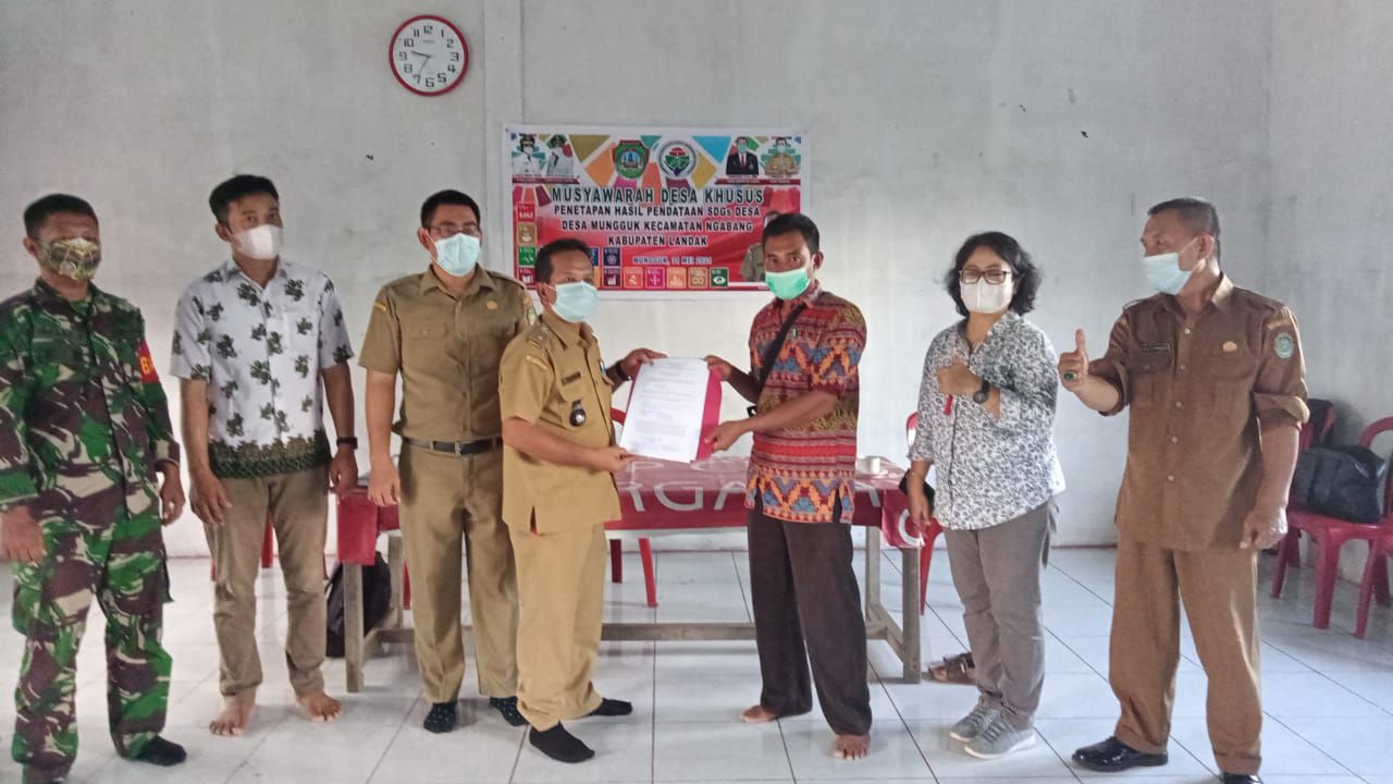 Landak – Babinsa Koramil 11/Ngabang, Serda Iman mengikuti Musyawarah Desa tentang Penetapan Hasil Data SDGs di Gedung Madi/TPA Desa Mungguk, Kecamatan Ngabang, Kabupaten Landak, Selasa (1/6/2021).