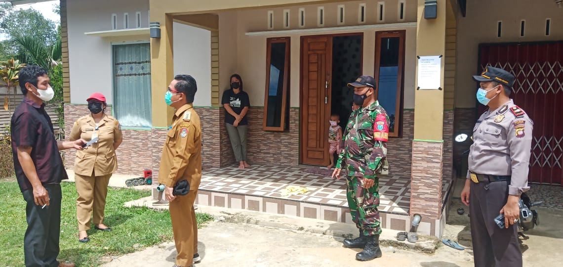 Landak – Danramil Menjalin, Kodim 1201/Mph, Peltu Suparlan bersama Muspika melaksanakan mengunjungi warganya yang sedang menjalani isolasi mandiri di Desa Raba, Kecamatan Menjalin, Kabupaten Landak, Selasa (1/6/2021).