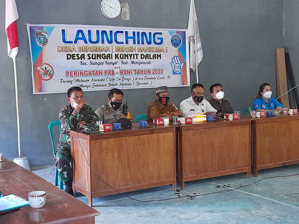 Mempawah – Danramil 1201-04/Sungai Kunyit Kapten Czi. Irman Herniman menghadiri launcing pra peringatan Hari Anti Narkoba Internasional (HANI) Desa Bersih Narkoba (Bersinar) yang digelar BNNK Mempawah dalam rangka pencegahan penyalahgunaan dan peredaran Narkoba di Desa Sungai Kunyit Dalam Kecamatan Sungai kunyit, 23/5/2021.