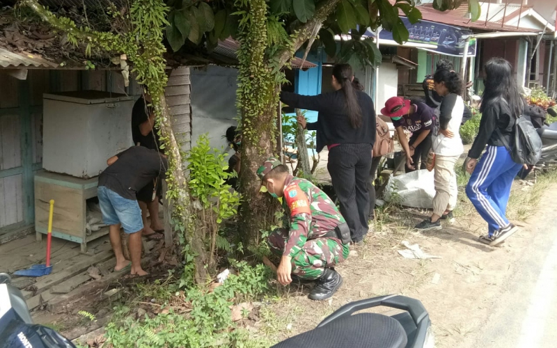 Dalam lanjutan peringatan Hari Lahir Pancasila, Babinsa Koramil 1201-09/Sengah Temila bersama warga Desa Sidas dan Desa Keranji Mancal bergotong-royong membersihkan Pos Babinsa Sidas, Minggu (30/5/2021).