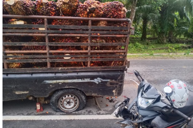Dilokasi kejadian, motor yang dikendarai korban menabrak mobil jenis Mistubishi L 300 warna hitam Nomor Polisi BG 9043 GB yang sedang terparkir di pinggir jalan karena mengalami pecah ban. Mobil tersebut diketahui sopirnya adalah SR (36) dan bermuatan kelapa sawit.