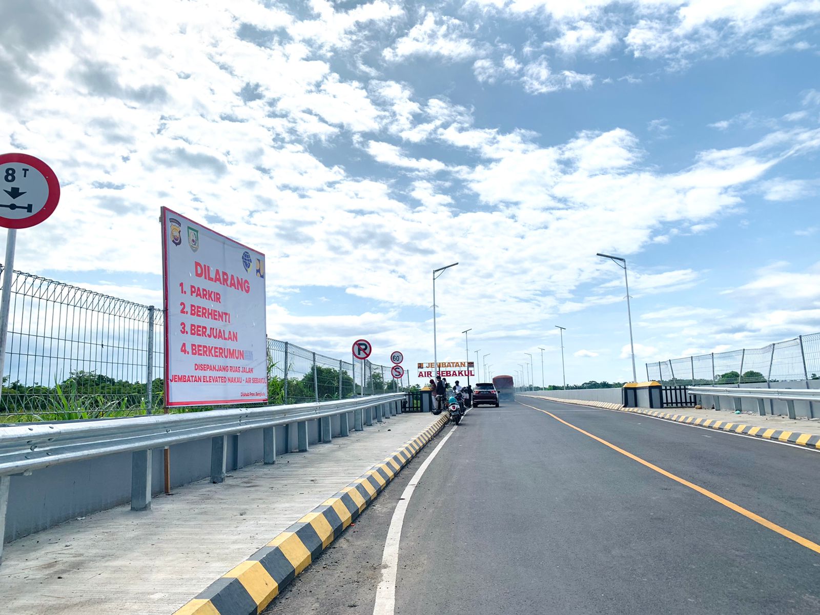 Bengkulu, Siberindo.co – Karena terkesan baru dan pertama kali di Bengkulu Jembatan elevated Air Sebakul mendadak viral. Viralnya jembatan Air Sebakul menyebabkan banyaknya masyarakat bengkulu yang berkunjung untuk sekedar berfoto, akibat banyak yang parkir dan berhenti di jembatan ini, membuat jalan macet dan padat, oleh sebab itu pemerintah dalam dinas yang terkait memasang rambu-rambu ataupun larangan di sekitar jembatan elevated Nakau-Air Sebakul ini.