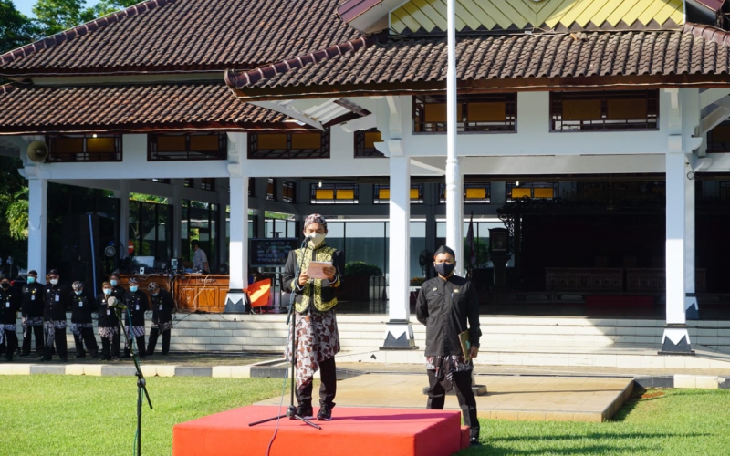 Pemerintah Kabupaten Batang menggelar upacara peringatan Hari Pendidikan Nasional (Hardiknas) Tahun 2021 Secara sederhana dihalaman Pendopo Kabupaten Batang, Senin (3/5/21)