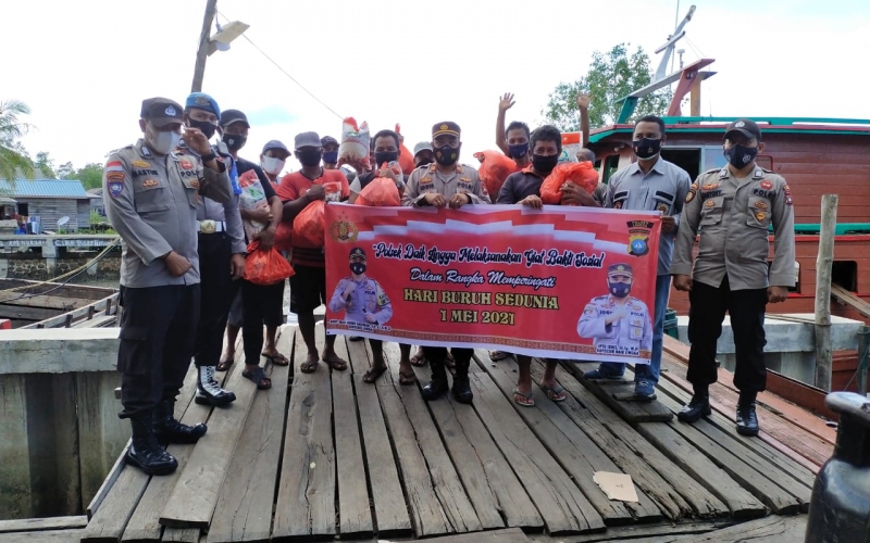 Kapolsek Daik Lingga IPTU Idris, SE, Sy, MM mengatakan Dalam rangka memperingati hari buruh sedunia yang bertepatan dengan bulan suci ramadhan 1442 H / 2021 M Polsek Daik Lingga menggelar bakti sosial dengan memberikan bantuan sembako sebagai wujud nyata kepedulian polri terhadap buruh yang terdampak pandemi covid 19.