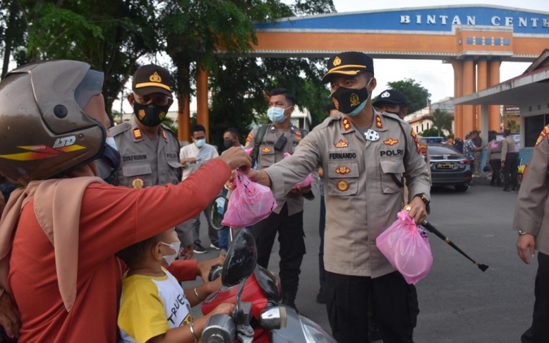 Polres Tanjung Pinang Bersama Bhayangkari Berbagi Takjil dan Masker