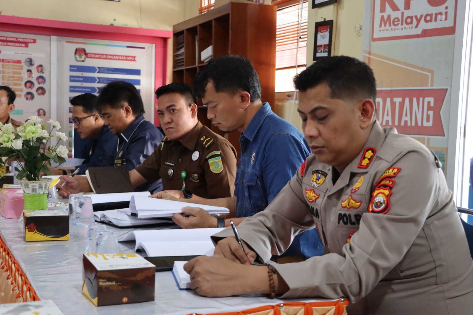 Kepahinag – Kapolres Kepahiang Polda Bengkulu AKBP Yana Supriatna S.I.K., M.Si., menghadiri Rapat Koordinasi Pencalonan Anggota DPRD Kabupaten Kepahiang dalam Pemilu Tahun 2024, bertempat di Aula KPU Kabupaten Kepahiang, Selasa (02/05/2023).