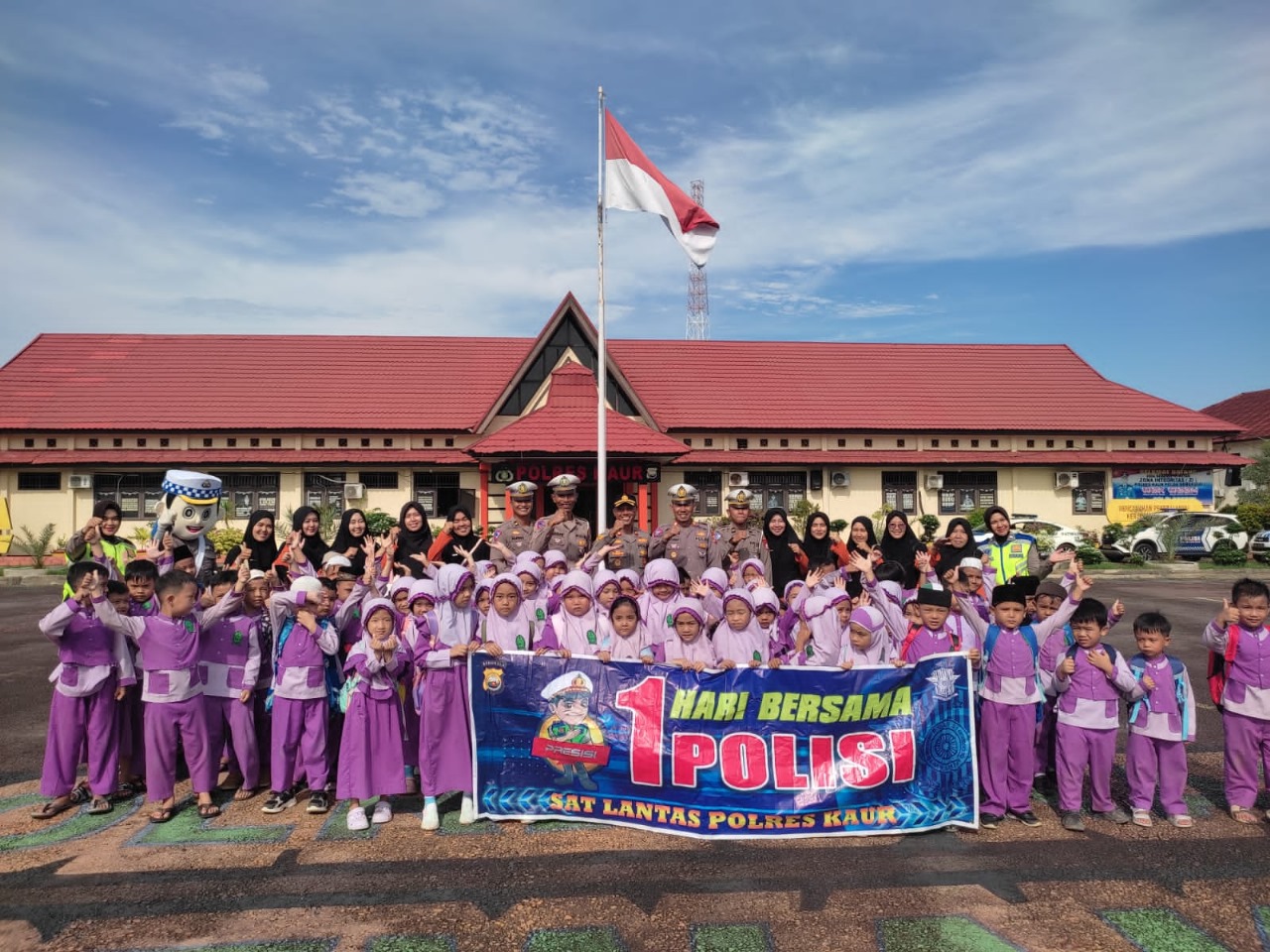 Kegiatan Sat Lantas Polres Kaur menjeput dan Mengawal Anak TK PAUD Insan Kamil untuk memberikan pegenalan lingkungan kepolisian sejak dini.