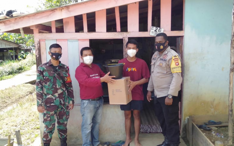 Babinsa koramil 1206-16/Seberuang Serda Hendi melakukan pendampingan dalam pembagian berupa barang kepada warga yang di Desa Emeriang, kecamatan Seberuang, kabupaten Kapuas hulu.