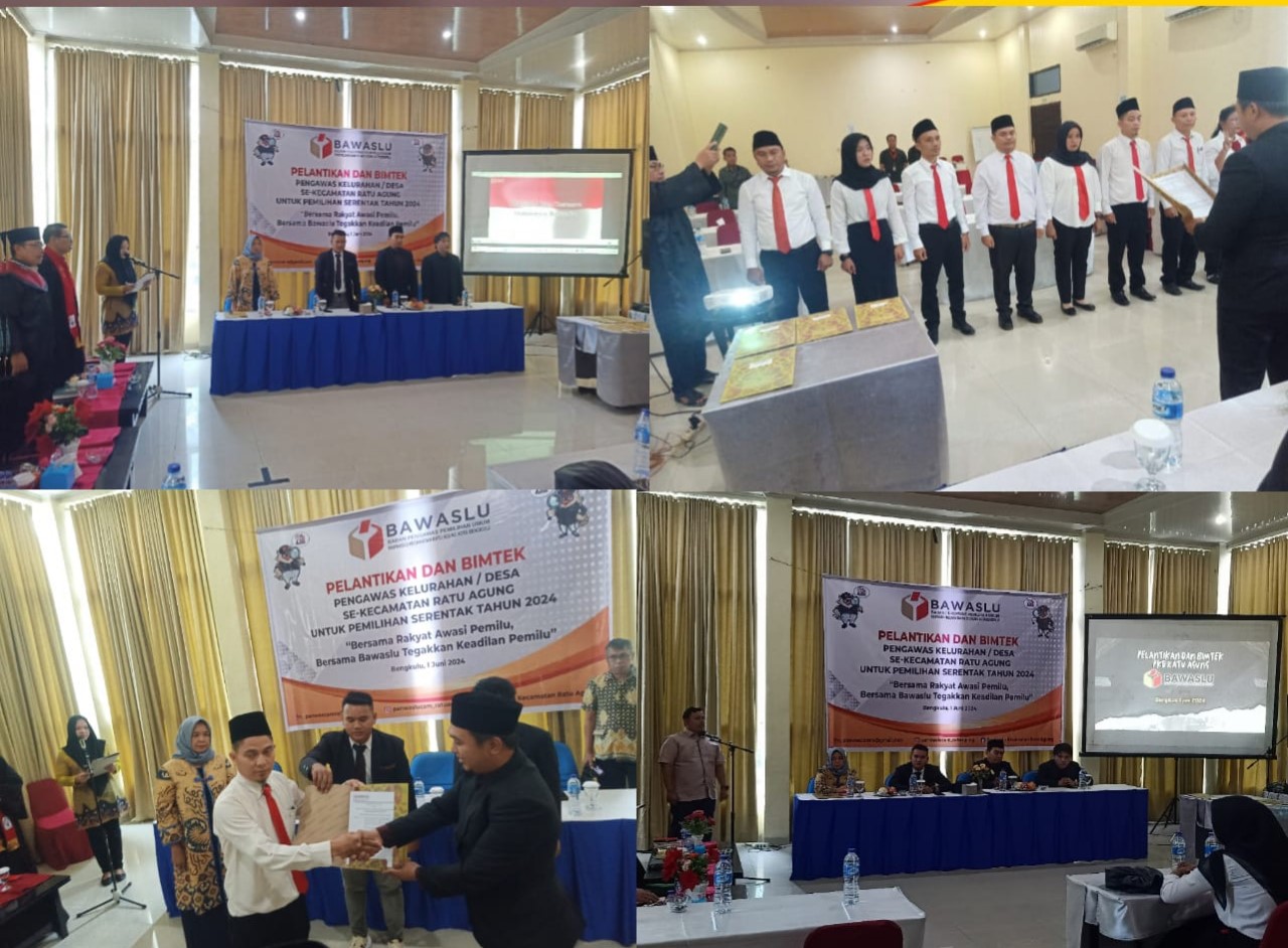 Kota Bengkulu – Kapolsek Ratu Agung Polresta Bengkulu Polda Bengkulu, menghadiri kegiatan pelantikan dan pembekalan Pengawasan Kelurahan/Desa (PKD) Pilkada 2024 di Aula Hotel Adeva Jl. Pantai Panjang Kel. Nusa Indah Kec. Ratu Agung Kota Bengkulu, Minggu (2/6/2024).