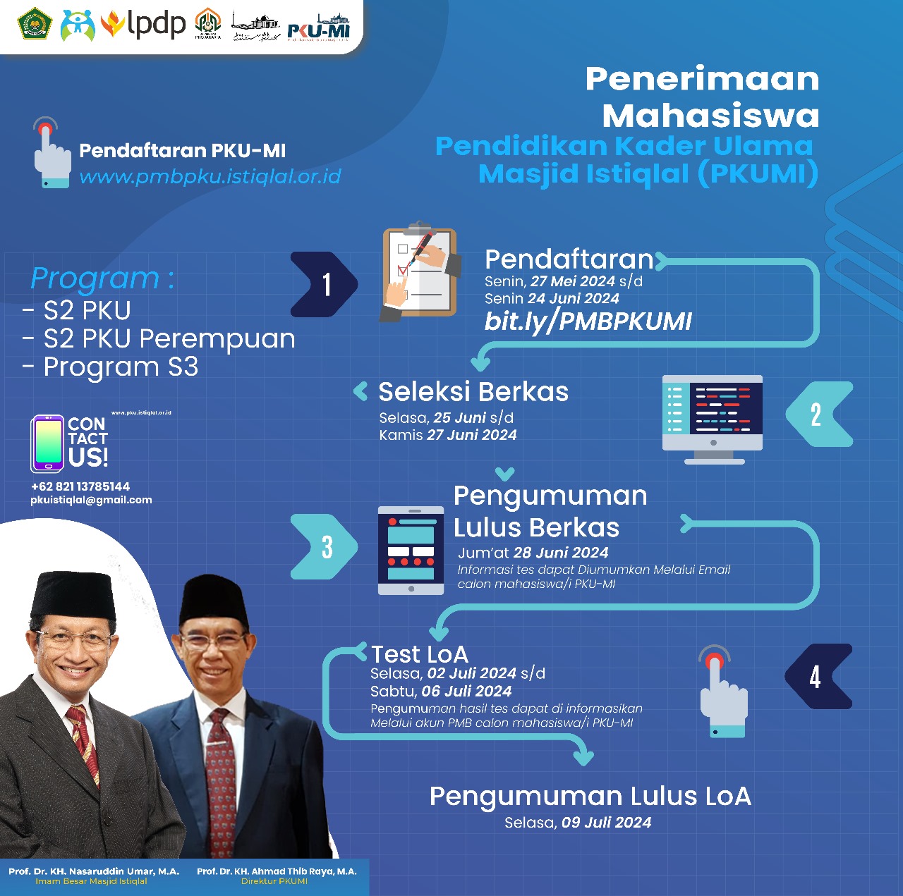 “Peserta yang dinyatakan lolos tes PKUMI-PTIQ melalui http://pmbpku.istiqlal.or.id akan mendapatkan LoA yang digunakan mendaftar di LPDP dalam program Pendidikan Kader Ulama (Laki-laki) atau Pendidikan Kader Ulama Perempuan (PKUP) dan akan dibebaskan untuk Tes Bakat Skolastik (TBS) oleh LPDP” terang Direktut PKUMI.