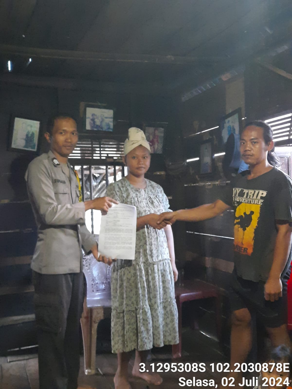Lebong – Setelah dilakukan mediasi oleh Bhabinkamtibmas, pasangan suami istri ini kembali rujuk dan berdamai setelah peristiwa kekerasan dalam rumah tangga (KDRT) yang terjadi.