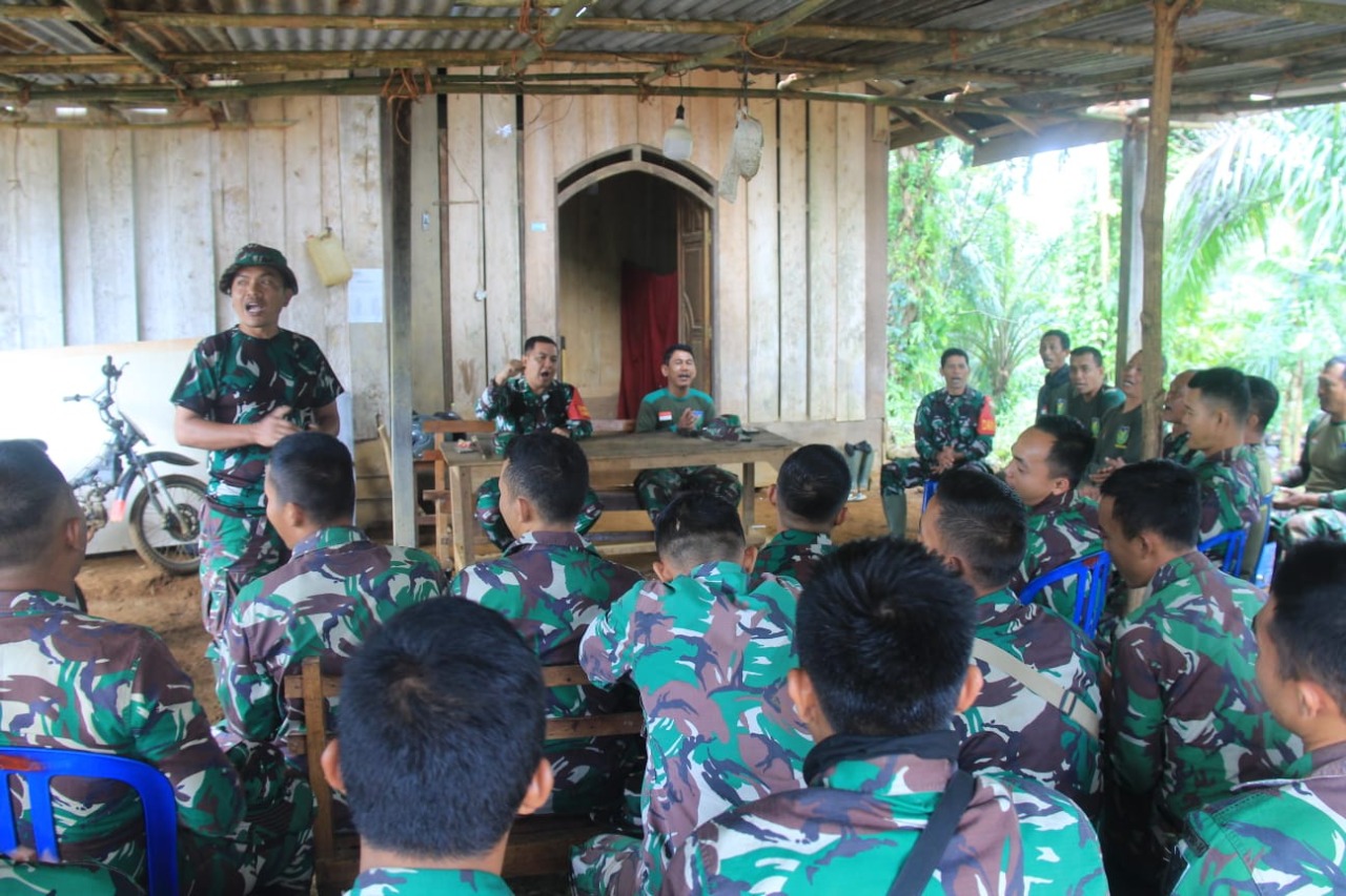 Pagi ini anggota Satgas terus memulai aktivitas dan sudah siap di lapangan untuk menerima tugas dari perwira pengawas TMMD Kodim 0423/BU yang didahului dengan apel pengecekan. Apel pengecekan bertujuan untuk mengetahui kesiapan anggota Satgas dan untuk menyampaikan informasi, pembagian tugas dan melakukan koordinasi antar anggota Satgas.