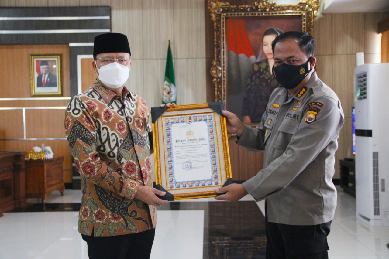 Pin Emas dan Piagam Penghargaan ini disampaikan Dir Binmas Polda Bengkulu Kombes Pol Endro Prasetyo kepada Gubernur Bengkulu Rohidin Mersyah, di Ruang Kerja Gubernur Bengkulu, Kamis (02/09/2021).