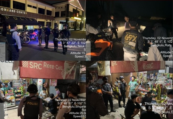 Bengkulu – Dalam rangka mencegah tindakan pidana 3C dan kelompok kelompok kriminal, Personel Polresta Bengkulu Polda Bengkulu, melaksnakan Patroli mobiling di seputaran Polresta Bengkulu, Kamis (02/11/2023) malam.