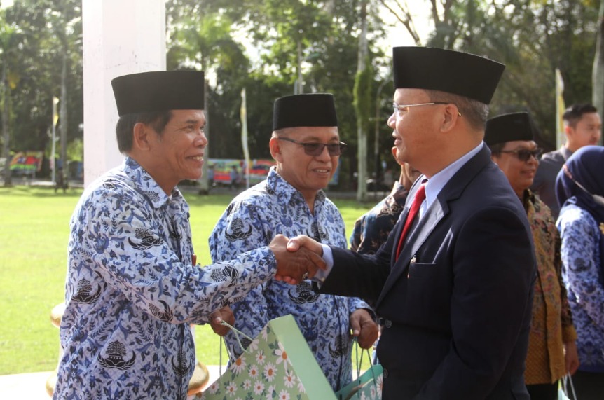 Diketahui usai Upacara Peringatan Hari Bhakti PU Ke-77, Gubernur Rohidin bersama jajaran PUPR Provinsi Bengkulu dan Balai Wilayah VII Jalan dan Jembatan Bengkulu menyerahkan apresiasi kepada pensiunan insan PUPR Bengkulu. (ADV)