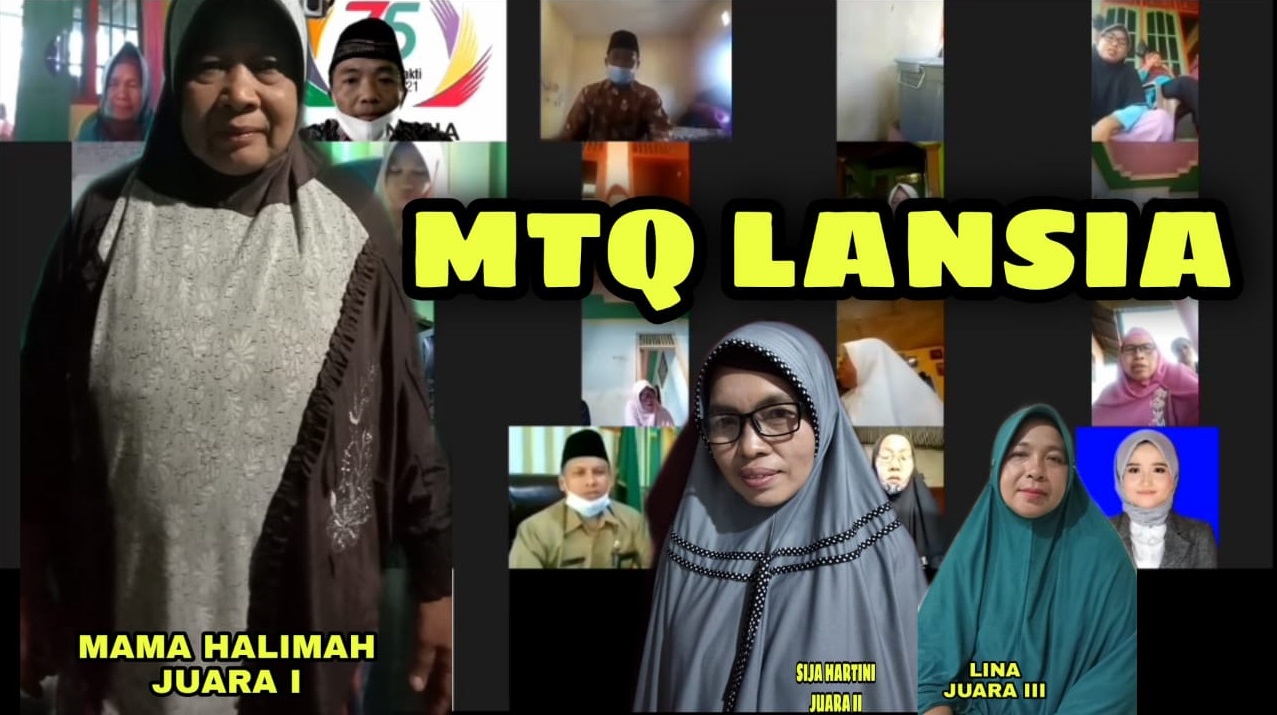 Bengkulu,Siberindo co – Mama Halimah (55) tahun warga Desa Tungkal II Kecamatan Pino Raya keluar sebagai juara satu dalam lomba MTQ kategori lanjut usia (Lansia). Event akbar dalam rangka Hari Amal Bhakti (HAB) Kementerian Agama tahun 2021 itu digelar secara virtual melalui Zoom Meeting diikuti 83 peserta. Ia meraih nilai 228, sementara diposisi kedua Sija Hartini kelahiran 1977 Pasar Pino dengan nilai 205, kemudian juara ketiga diraih oleh utusan Desa Napal Melintang atas nama Lina nilai 200.