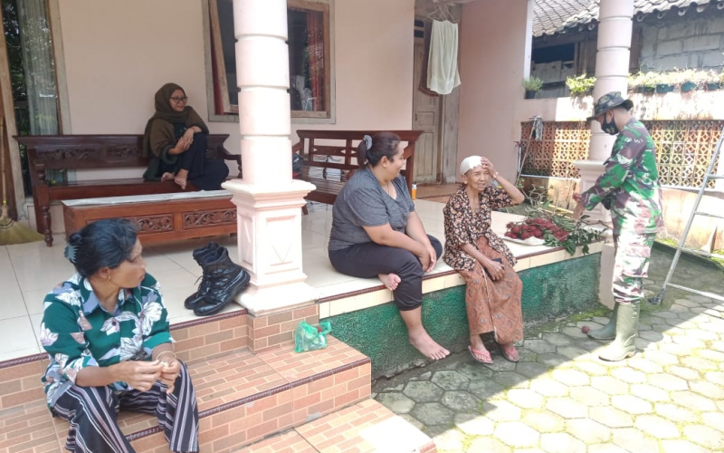 Perbincangan ringan di selingi canda tawa yang dilakukan oleh Serma Sunardi bersama mbah sutinah seputar tanggapan warga dengan adanya program TMMD Reguler dari Kodim 0714/Salatiga.