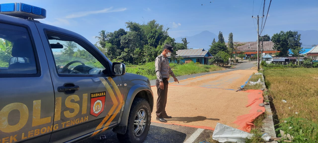 Patroli Polsek Lebong Tengah, Tegur Warga Menjemur Hasil Panen Dijalan
