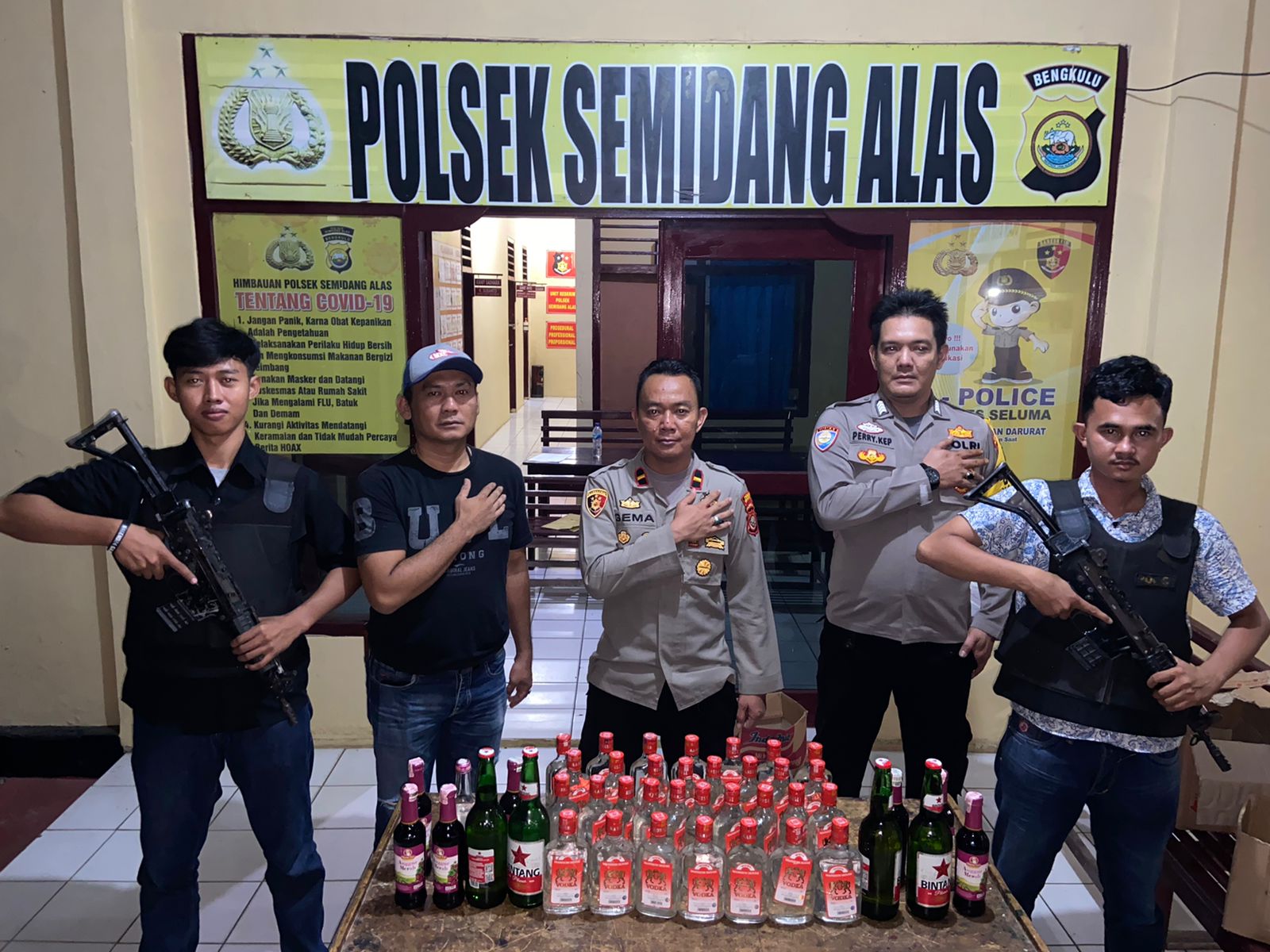 Seluma – Sebanyak 43 botol minuman keras (Miras) disita petugas Polsek Semidang Alas Polres Seluma Polda Bengkulu dalam razia penyakit masyarakat (Pekat) pada Senin (3/4/2023) malam.
