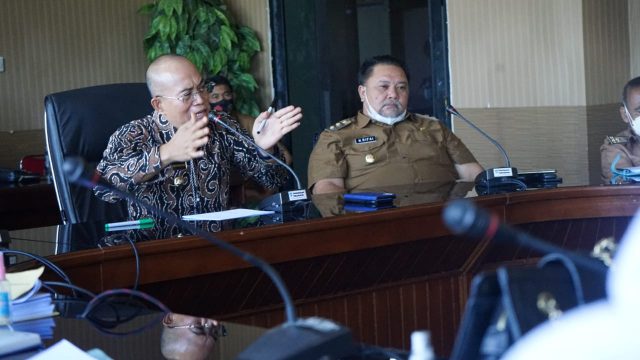 Bengkulu, Siberindo.co – Bupati Bengkulu Selatan, Gusnan Mulyadi bersama Wakil Bupati, Rifa’i Tajuddin dan Sekretaris Daerah, Yudi Satria menggelar rapat membahas permasalahan tentang gerai Indomaret dan Alfamart diruang rapat sekretariat daerah, Senin (3/5/2021).
