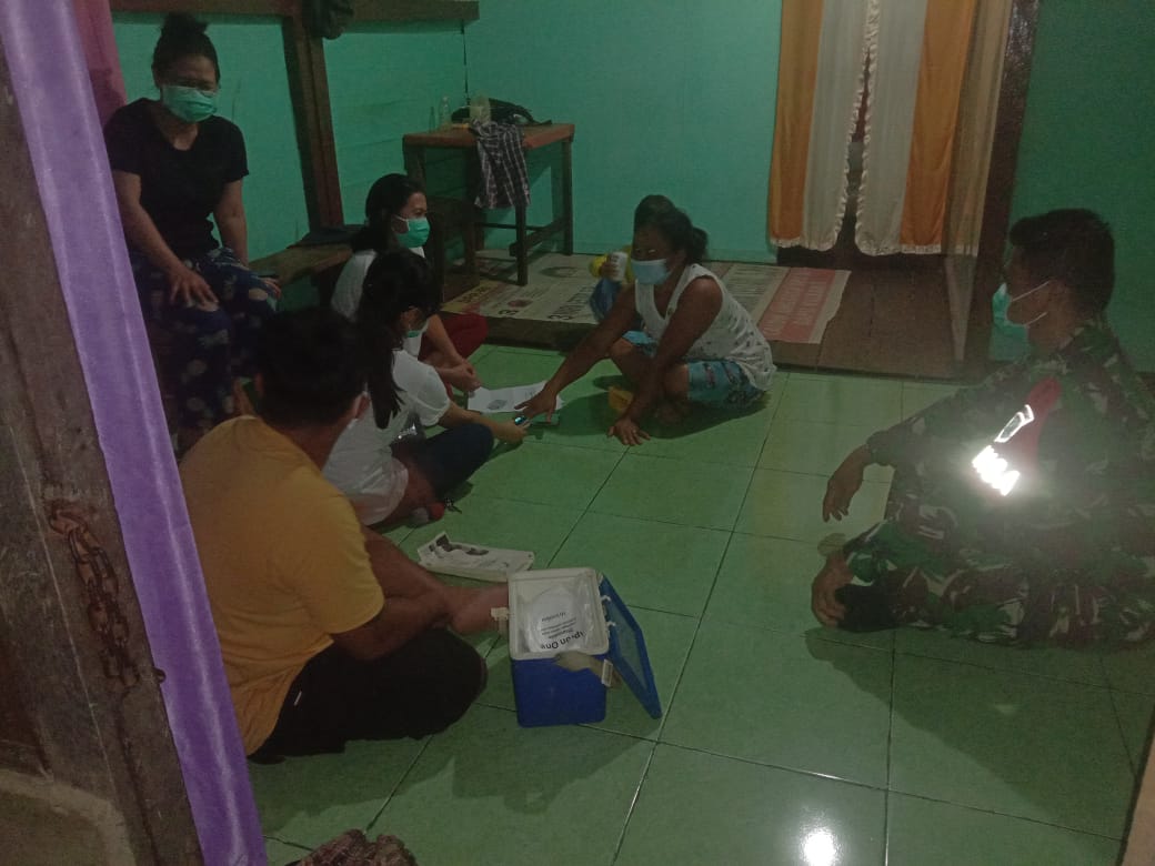“Sosialisasi dilakukan dengan bersilaturahim pada warga, petugas puskesmas juga menjelaskan manfaat swab PCR adalah untuk mengetahui apakah terpapar covid atau tidak,” ungkap Serda Masnar.