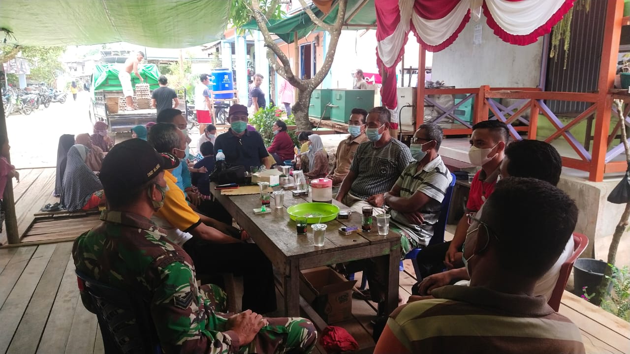 Landak – Upaya pencegahan penyebaran Covid-19 di seluruh wilayah masih terus digencarkan. Babinsa Koramil 12/Air Besar bersama perangkat desa memantau dan mengamankan kegiatan warga yang sedang menggelar resepsi pernikahan di Desa Jambu Tembawang, Kecamatan Air Besar, Kabupaten Landak, Sabtu (29/5/2021).
