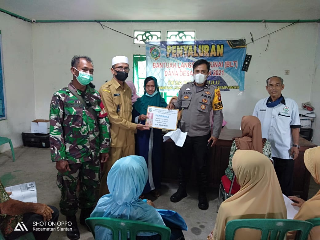 Mempawah – Babinsa Koramil 1201-01/Jungkat, Jajaran Kodim 1201/Mempawah, Sertu Suyatno mendampingi penyaluran Bantuan Langsung Tunai Dana Desa (BLT-DD) kepada 364 warga Desa Wajok Hulu, Kecamatan, Jungkat, Kabupaten Mempawah, Senin (31/5/2021).